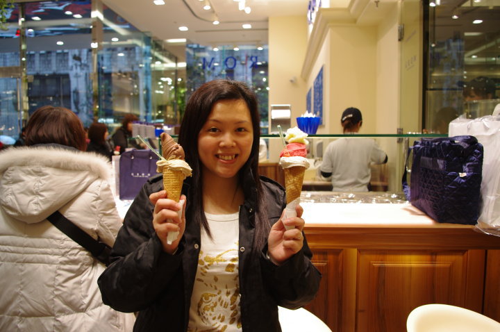 由Lumina shop到0101,見到好出名gelato GROM,實在太吸引,我地兩個點可以忍口呢?? 每人叫了幾球食呢!! hahaha. 一路嘆緊gelato,一邊欣賞職員點樣搯gelato,又快又有technique.