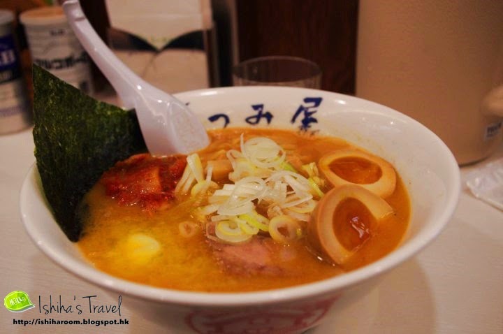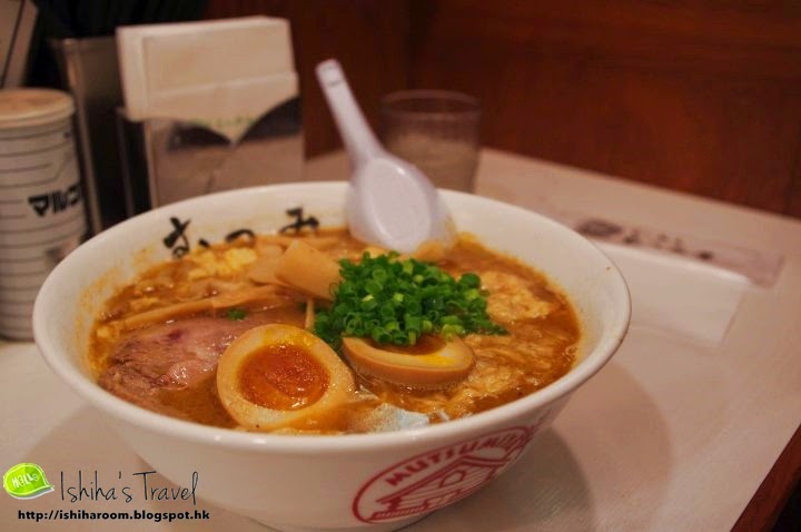 每人點了碗拉麵,因為我係一個勁愛辣既人,所以我order了赤味噌濃湯拉麵,仲特登加多隻玉子,麵到我地幾個隻眼已經望住開邊玉子。 HAHA真係糖芯蛋呀! 大家唔等就即刻試食了一口,好正!! 那100yen值回票價啦~~~