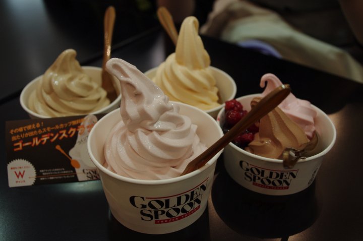 食拉麵之前都有經過呢間shop,那時沒有特价,一個麵包起碼都要200yen。 點知食完麵行出來發現一大包都係500yen,而入面有成7個mini breads,有d仲要係牛角酥。行左唔夠15分鐘,好多店舖都關門。 我地都唔想行來行去,到了一間GOLDEN SPOON食GELATO hea一陣,等到2200先動物。