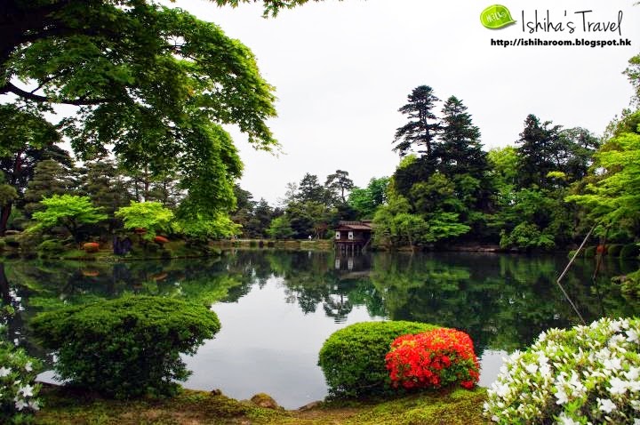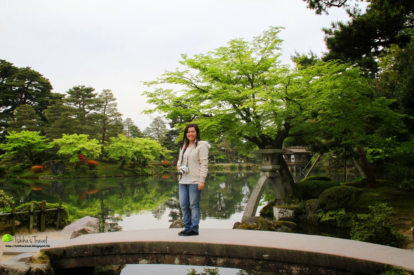 兼六園就是前田利家的後花園,金澤的兼六園與水戶的偕樂園、岡山的後樂園並稱日本三大名園。 而唔同既季節到兼六園欣賞,就會有唔同既景觀(兼六園四季之美~http://www.pref.ishikawa.jp/siro-niwa/kenrokuen/season.html),最吸引我係冬天既景色呢!! 不過我今次去我都覺得好靚, 一片綠柔柔好舒服,而且我仲見到落剩既櫻花。 如果時間夾到,來兼六園觀賞櫻花同紅葉真係一流!! 有興趣可以睇兼六園花曆