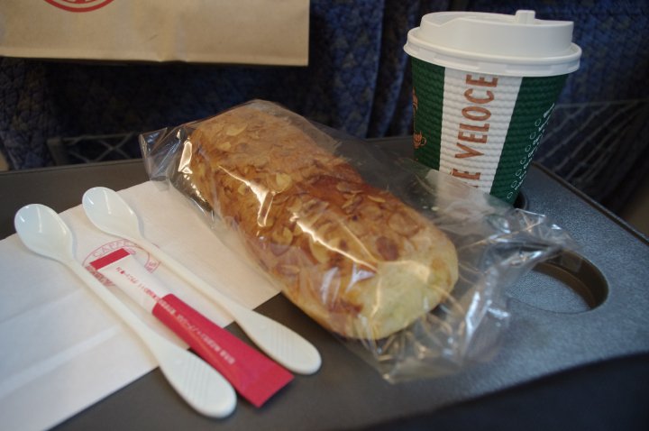 見有時間,我地逐一到便利店或到cafe買早餐上車食,而我就買左一個包及一杯綠茶味Cuppaccino上車慢慢嘆,因為車程都有兩個多小時。綠茶味Cuppaccino味道唔錯,好香呢!!