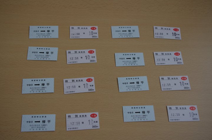 看一看時間表,剛走了一班車,只好買票後吃個lunch才出發。買票時發現有唔同等別既車卡選擇,本想買普通票(1660yen),因外面下雨,我地唯有買有窗既"特別列車"(再加360yen)到櫸平站。 如果大家唔想濕身,記住帶雨衣去呵。
