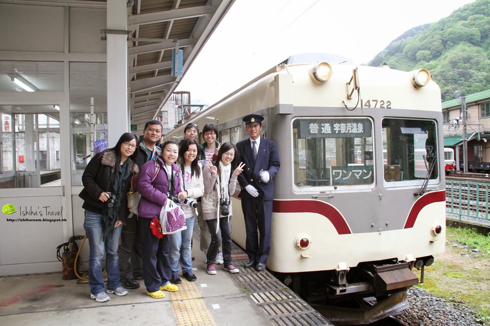 沿途風景不錯,可惜天太陰。坐了90分鐘便到了宇奈月溫泉,未落車已經見到小火車,未坐先興奮。要坐黑部峽谷鐵道便要由宇奈月溫泉站行約5分鐘便到。
