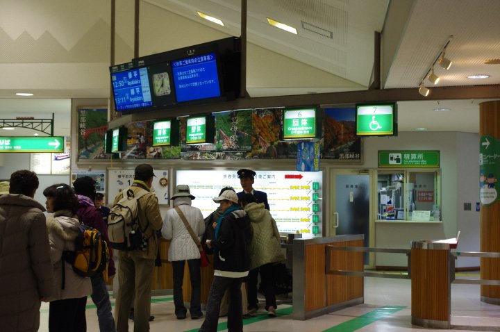 一入到站左邊便是ticket office,那裡有出售往立山黑部+6種交通工具既票。既然都要買飛到宇奈月溫泉(1790yen),那就順便買埋明天既飛(因明天要一早出發,唔想再同溝通唔到既票務員不停地糾纏),最後票務員答"不可以預售"。