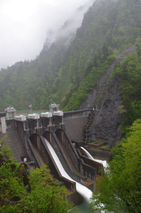 小火車經過隧道後,右邊看見宇奈月大壩,那是黑部峽谷最新起的大壩。