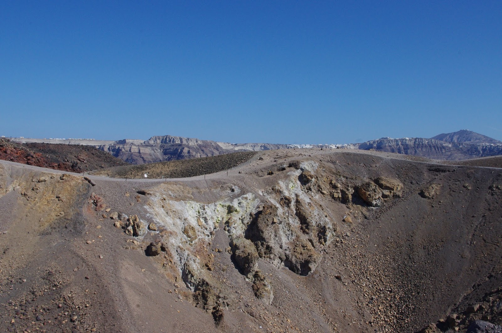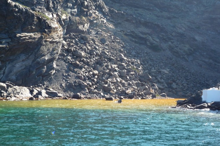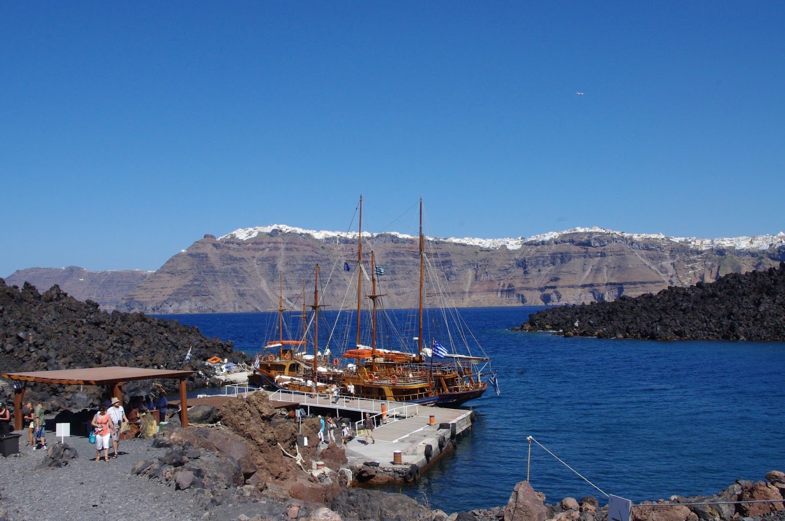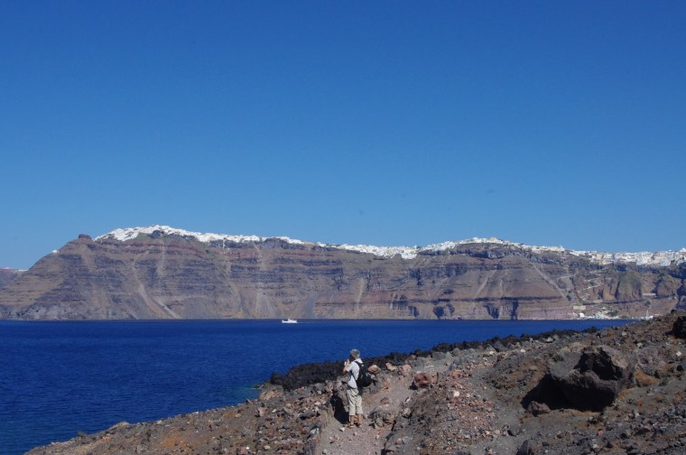 係火山島望返過去可以看到整邊懸崖,真係好靚 !! 仲望到Fira, Imerovigli & Oia