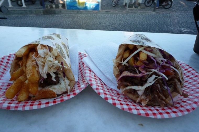 最後走到Fira鬧街往Oia 的路上好出名既Lucky’s Souvlaki,不過我地沒有去試呢間,而係去了後面轉角位一間吃(對住ATE Bank),因為見到好多人排隊,我估唔會差得去邊。 各人買了一個gyros,最貴那個lamp souvlaki都係Eur $2.75,而且味道好好呢!!份量又大,鍾意仲可以叫老闆加多D配料/調味料都冇問題,我比較喜歡羊多過雞pita。