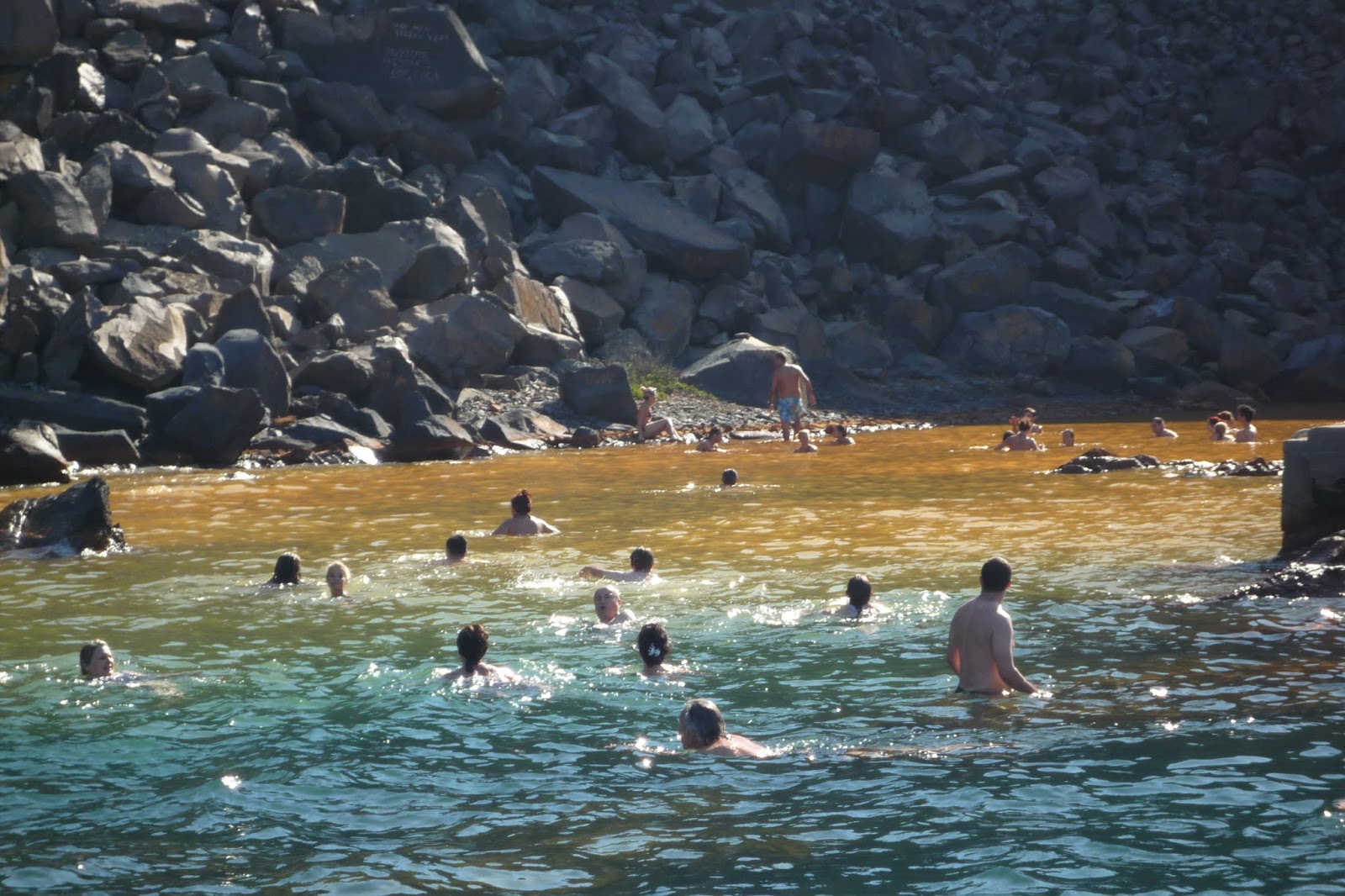 原本小吉子打算落海,不過佢隻腳有事,所以我都唔比佢落去,唯有係船上睇人開心。當日水溫大概得15度,不過溫泉那邊就有40度。而且船停底位置好近,唔駛游好遠已經到溫泉位置,而且仲可以站係水中。 停留時間好短大概20分鐘左右。