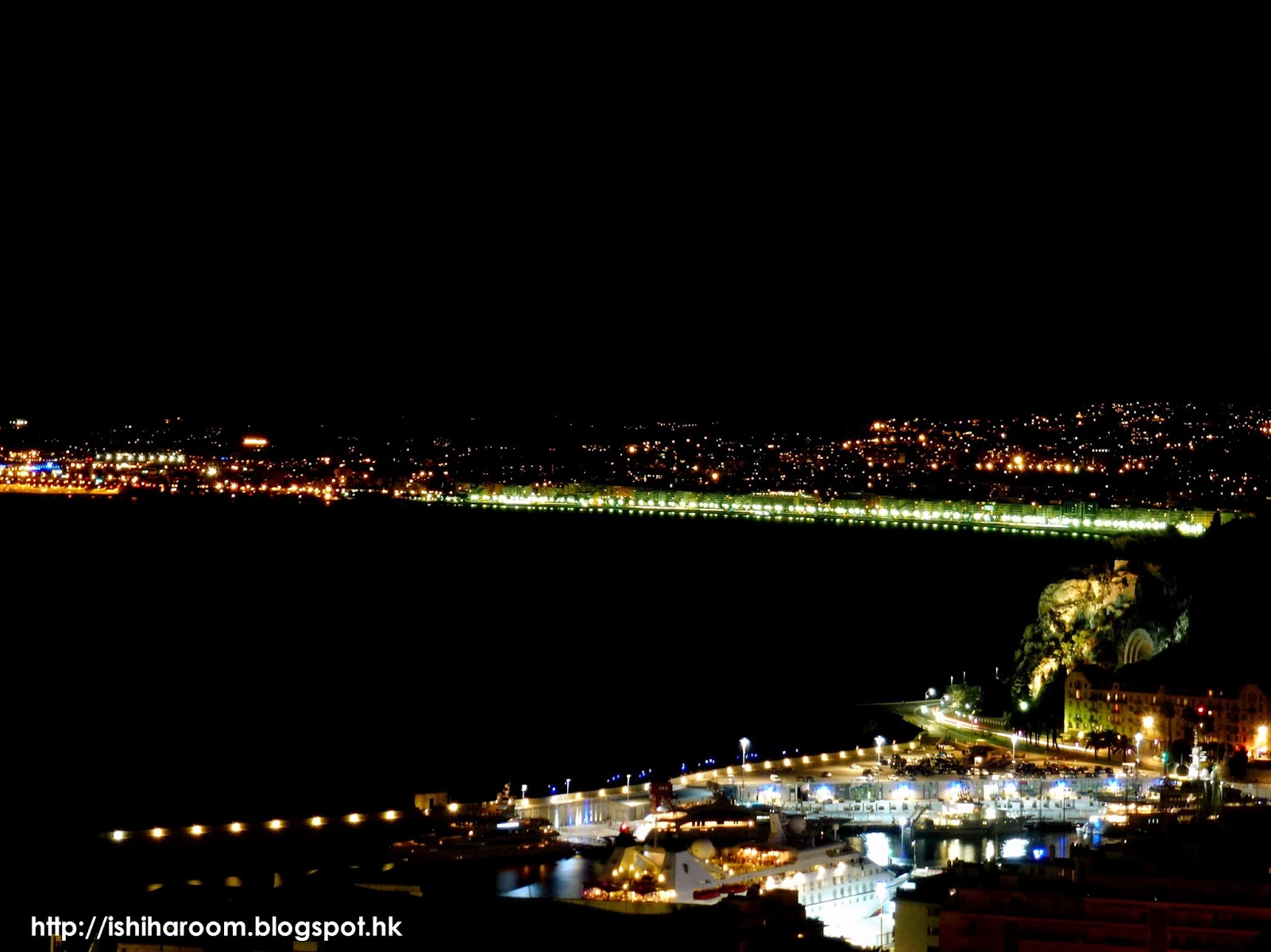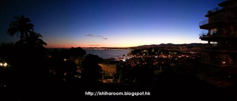 晚上望出外的景色, 看見蔚藍海岸的天使灣.