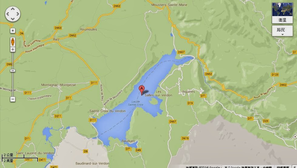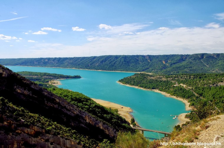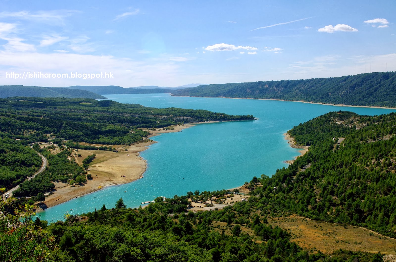 去完咁靚的陶藝山城 Moustiers-Sainte-Marie, 便駕車到 Gorges du Verdon “維東峽谷". 由Moustiers-Sainte-Marie經D957便可經Gorges du Verdon欣賞Lac de Sainte-Croix景.這座峽谷號稱是歐洲境內的最美峽谷, 以斷崖及億萬年間形成的壯麗景色著名. Verdon 指的是切穿峽谷的這條河, 而名字的來源是取自拉丁文 Ver-「綠」的意思. 一路沿著山路上, 就會見到Lac de Sainte-Croix聖十字湖.