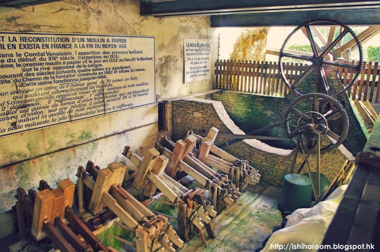 鎮上的另一景點是紙磨坊, 係14世紀左右是手工造紙的重要地點. 主要原因除了當時的教宗搬到附近的大城亞維儂, 促成了紙張的大量需求, 另一個原因乃是因為此地的水質豐沛清純.