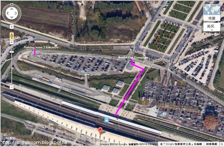 我地由Avignon城中心駕車到TGV站, 幾分鐘就到. 雖然我有預多左時間, 最後我就用左20分鐘找租車公司的停車位置. 我見每個Parking zone都係要入閘, 泊錯左點算?? 所以吉少落車入去問, 仲行左好遠先找到租車公司. 點估到租車公司係哂車站出面先得?! 仲要咁遠 (睇衛星圖就知啦) 我等極都唔見吉少, 都搞到好心急, 因為時間越來越少. 於是我係外邊繞多兩圈. 終於比我見到Sixt的parking. 個signage細到唔會睇到, 仲只得一個signage. 之後係大門口見到吉少, confirm泊係P3. 呢張圖係TGV Avignon官網找, 都冇指示