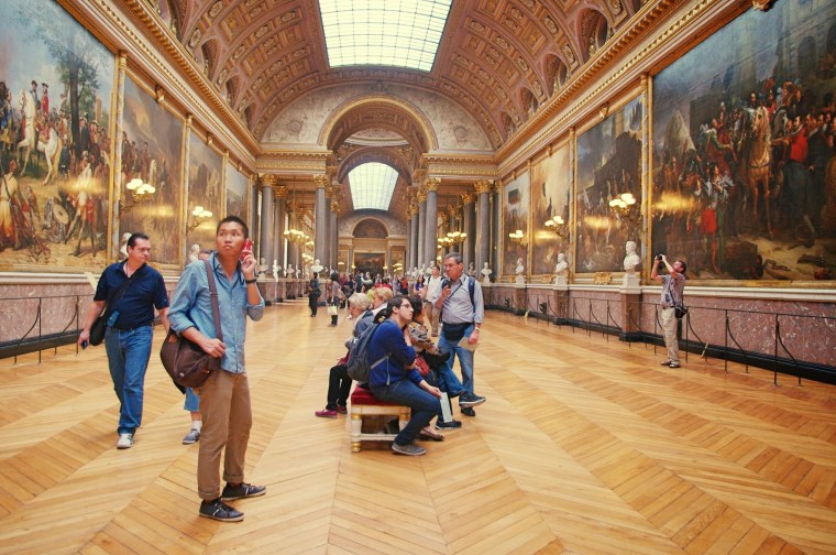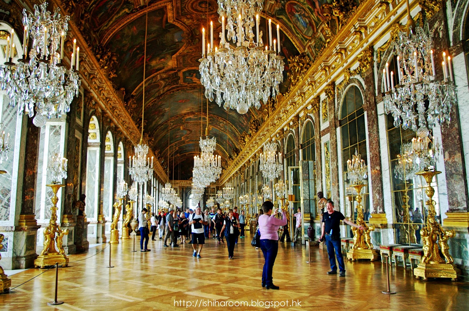凡爾賽宮內有好多畫作, 可慢慢細賞. 凡爾賽宮內最多人講&最出名的大廳就係鏡廳, 這個著名的大廳的主要特徵是17扇面向花園的玻璃窗, 每扇包含21面鏡子, 共計357面. 連Ludwig II係林德霍夫宮 Schloss Linderhof都要做一個鏡廳, 可想而知真係好靚. 鏡廳出名人多, 聽閒仲有好多小偷, 請加倍小心!!