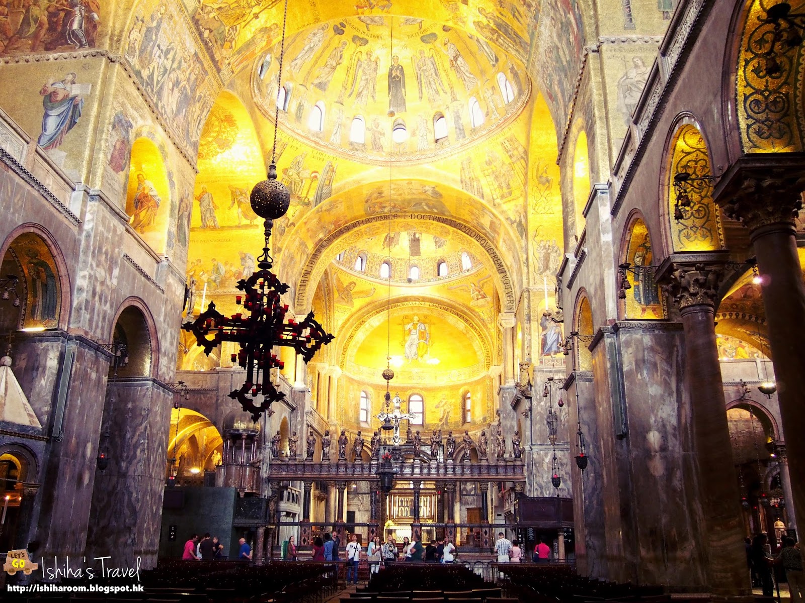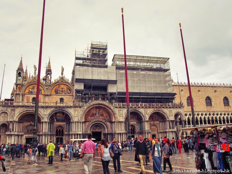 威尼斯的景點大都集中在聖馬可廣場, 一面係聖馬可教堂, 教堂面對著一座博物館, 還有總督府, 鐘樓, 嘆息橋等都在這裡. 聖馬可大教堂(Basilica San Marco) 是世界上最負盛名的基督教大教堂之一, 是第四次十字軍東征的出發地. 它的建築融合了拜占庭、哥德、伊斯蘭、文藝復興等各種風格, 同時展現東、西方的建築特色. 可惜今次去正在維修. 係教堂關閉前, 我地走左入去.