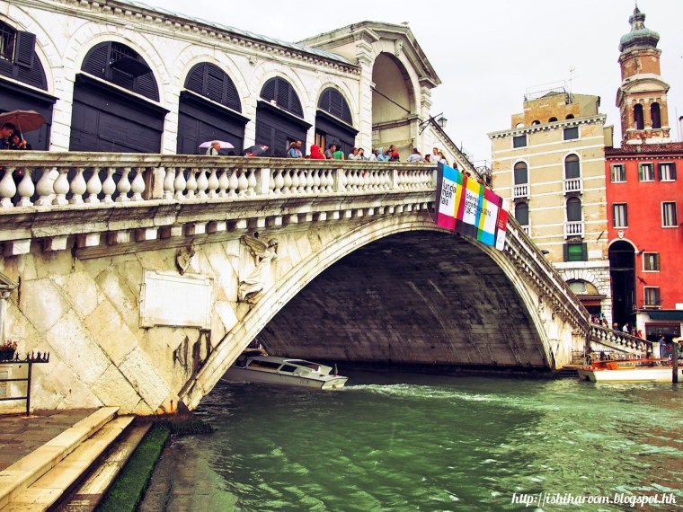 我今次book的旅館算方便, 係San Polo位置, 去Rialto Bridge都係5分鐘多D. 而且我地間房會望到河景, 都唔錯. 不過去威尼斯玩, 要拎大件行李過橋上樓梯都幾慘, 好彩威尼斯係我地到意大利既第一站, 行李磅數唔會太重, 所以行得也算舒服.