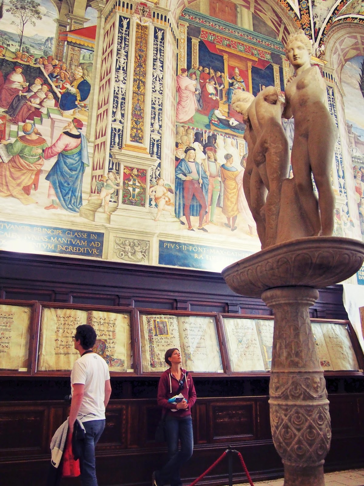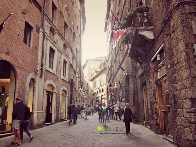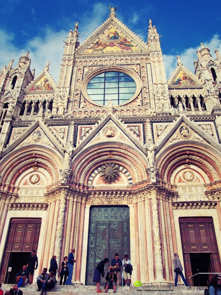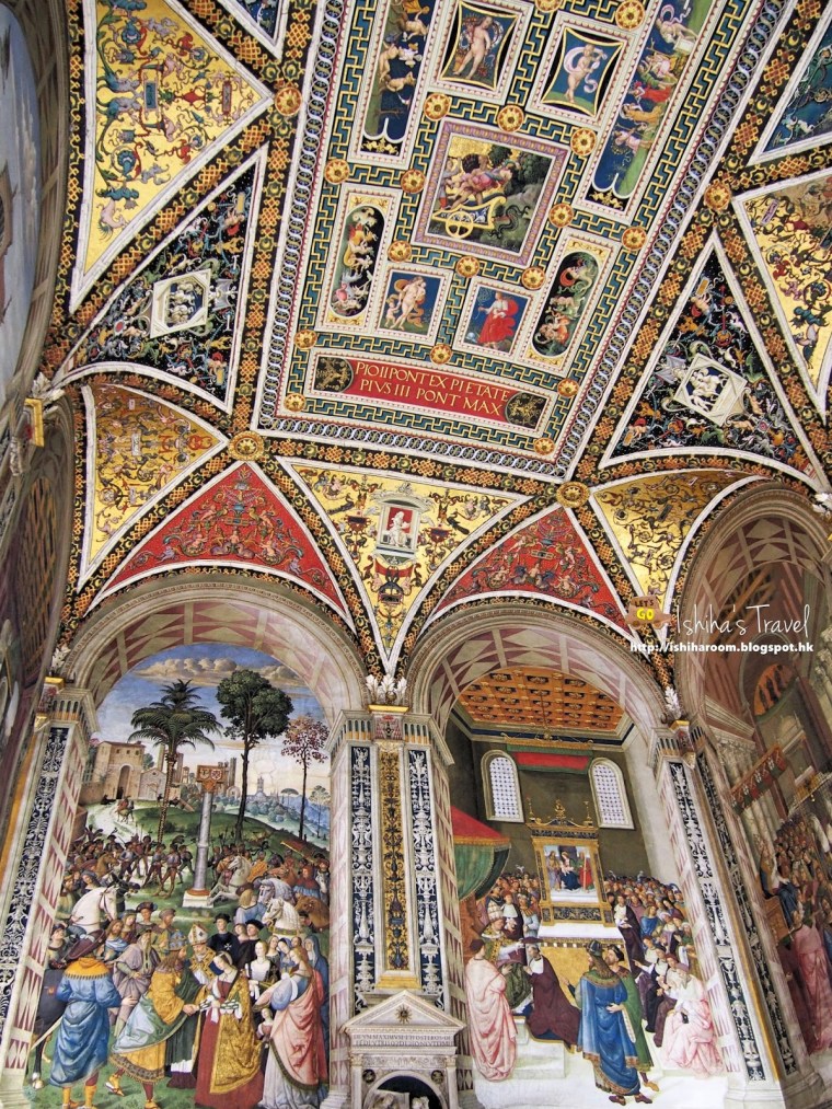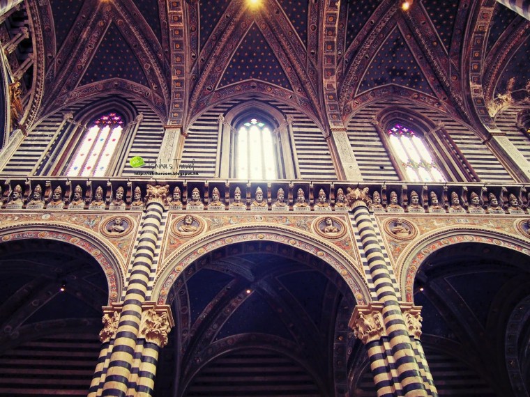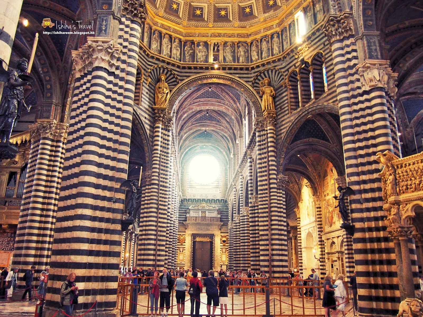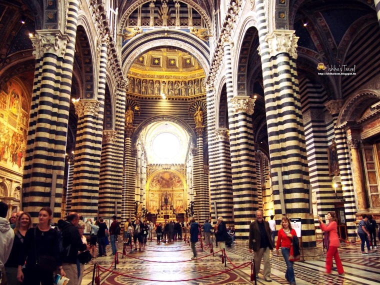 去完Space shopping之後, 便開車到Siena. 提到意大利山城小鎮代表, Siena一定會有份. 這座位於托斯卡尼地區的山城被認為是意大利最完美的中世紀小鎮, 與同區的佛羅倫斯及比薩是14世紀文藝復興的發源地.泊好車後, 走上幾層電梯便到了舊城. 我地先到了西恩納主教堂 (Duomo di Siena). 這座黑白相間的主教堂建於12世紀, 完工於14世紀末, 是中古時代最大教堂之一. 繞過教堂右方, 便是售票處. 如果有時間, 不妨買Opa Si Pass € 12,00 可以去哂Cathedral + Piccolomini’s Library + 塔頂. 另外仲有Gates of Heaven Tour(大約1.5小時)可以參加, Opa Si Pass + Gates of Heaven都係€ 20,00. 詳情可以睇: http://www.operaduomo.siena.it/eng/orari.htm