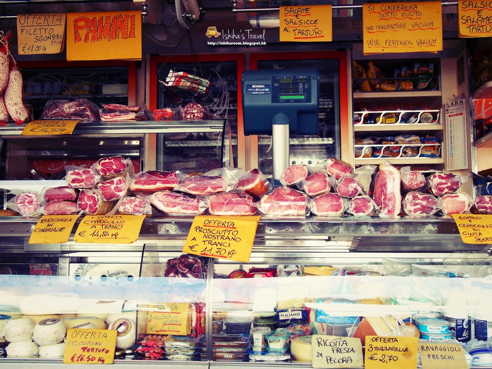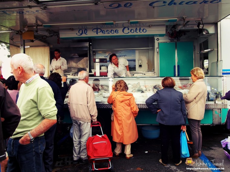 位處義大利中部托斯卡納既Montepulciano, 一般Travel book好少提, 不過呢個山城真係超紅, 一提Twilight New Moon就會好多人識. 來到Montepulciano, 剛好當日有farmer market, 所以又去襯下熱鬧. Farmer market每逄星期四就有, 係巴士站附近. 入面有好多野買, 家電, 衫褲鞋襪, cheese, 肉類, 新鮮海產, salamis, prosciuttos都有.