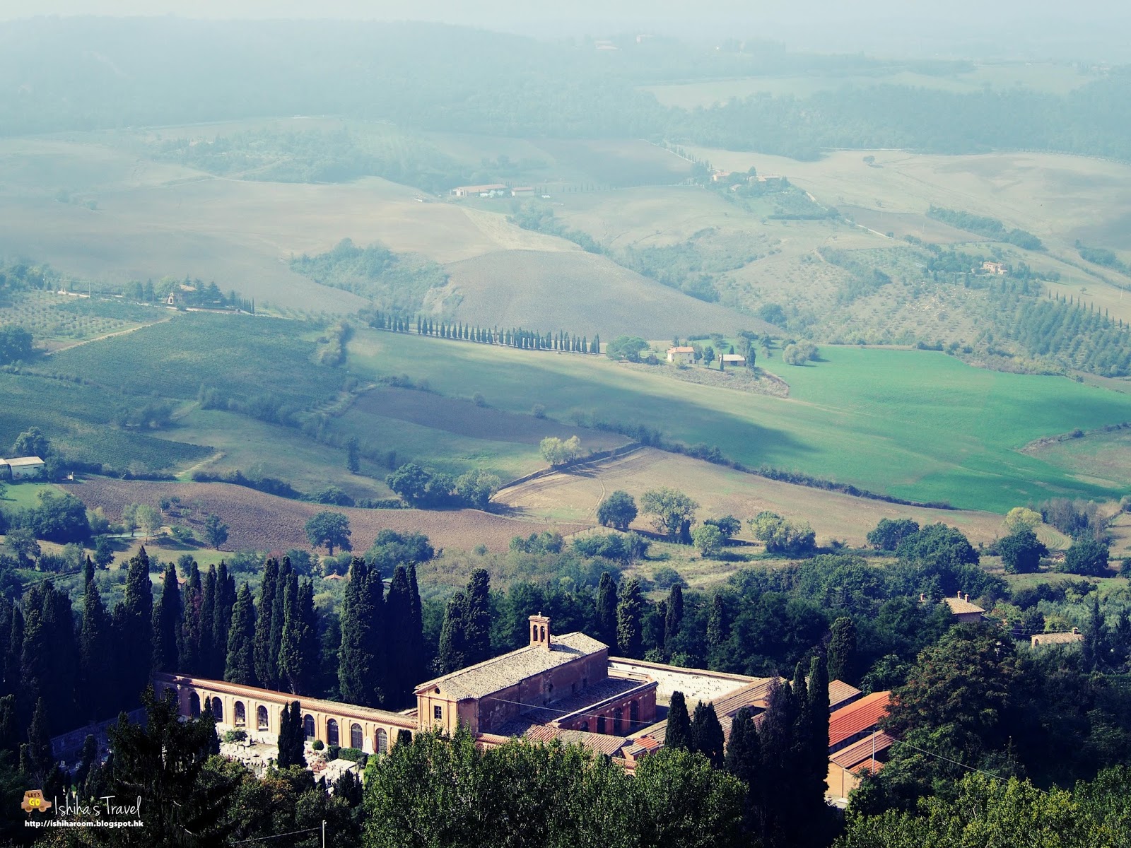 之前我都有講過Montepulciano出產Vino Nobile聞名, 我就入左去其中一間品酒店, 仲比我見到 Montepulciano對出既大平原, 個景真係好靚!! 加上早上好大霧, 平原被一層又一層既霧蓋住, 不過影相出來效果都唔錯. 好彩接近中午霧散去, 就影到呢個靚景.