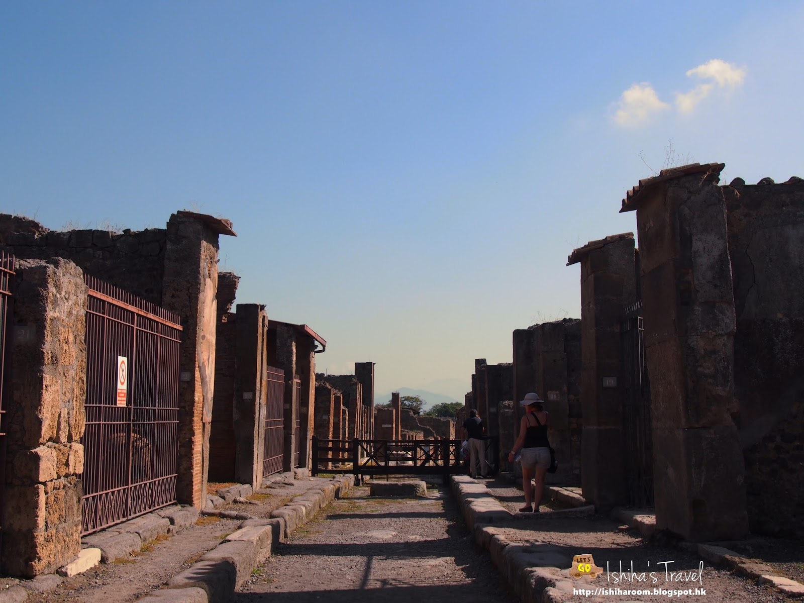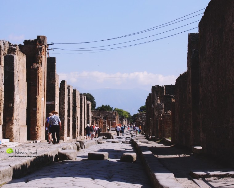 入到城中, 隨處可以見到路中間就塊大石頭, 其實佢地好聰明. 這個大石有兩種功用: 一: 這是行人過路處. 可於雨有積水時, 人可以踩住呢d有高度的石過馬路並不用濕腳. 二: 係用來作為路肩, 作為減速及防止馬車進入Pompeii.