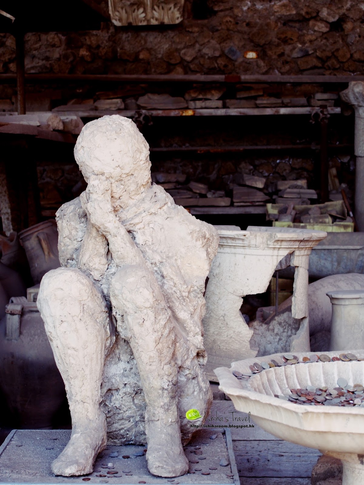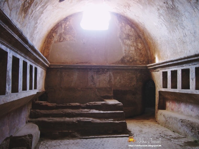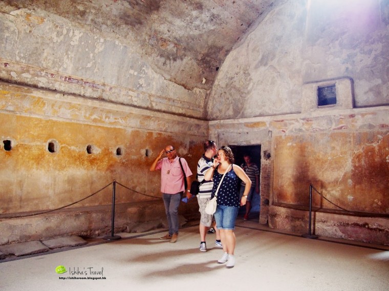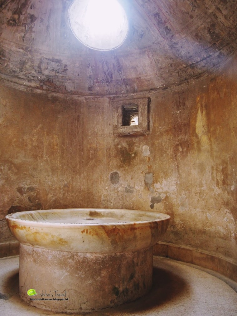 龐貝古城內有完整的供水系統, 水會係城外山上通過高架水槽引入城中水塔, 再通過城中管道分流到城中各處. 好多十字路口見到唔同石雕水槽, 供市民飲用. 係咁熱又曬既環境下, 自己帶來既水會好快飲哂, 所以我都有飲用呢d水. 好清涼架!!