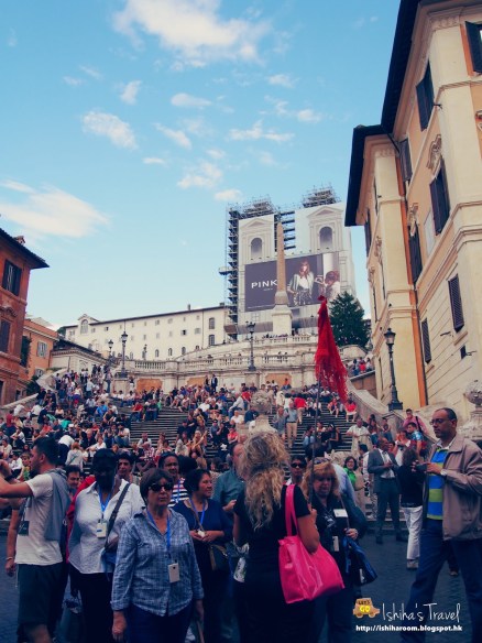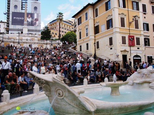 西班牙廣場 Piazza de Spagna是羅馬最出名既廣場, 主要係因為一套 “羅馬假期"曾經係度拍攝. 廣場中央有好出名既噴水池名叫破船噴泉La Fontana della Barcaccia.  噴泉後面有條長長既樓梯, 最頂係聖三一教堂 Trinita del Monti.  西班牙廣場附近有好多名店街, 我仲見到有幾間好靚既Cafe.
