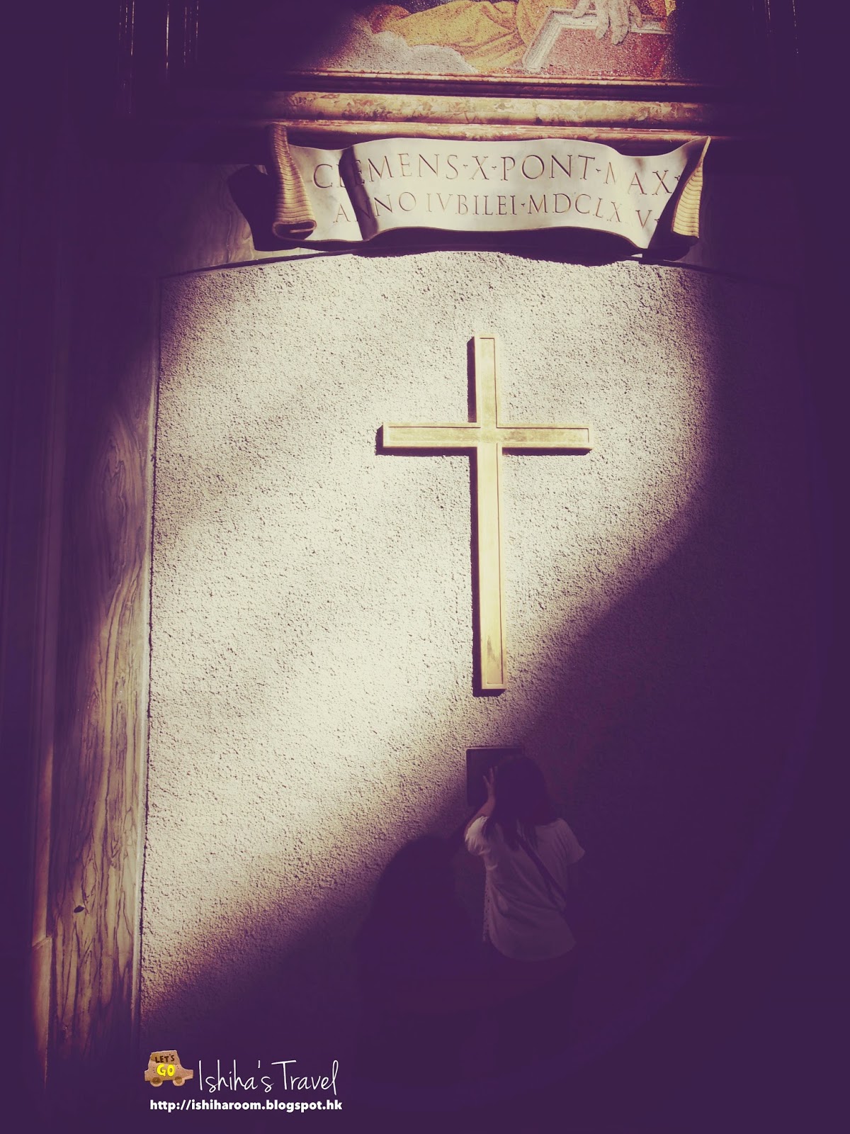 建於1506年至1626年間, 集文藝復興藝術家與建築師之力而成是全世界最大的教堂, 可容納超過六萬人.  未入教堂前, 我地先排隊登頂.  登頂係要比錢, 有分行樓梯 € 5, 搭電梯 €7.  行樓梯總共要上551級, 唔好以為搭電梯唔駛行, 只係行少d, 都要320級樓梯.   最後我都揀左搭電梯.  不過排隊人龍都算幾長, 我地都等左成30分鐘先入到去.  樓梯真係好窄, 上到愈高, 樓梯亦會傾斜. 登頂後, 會見到聖彼得廣場.