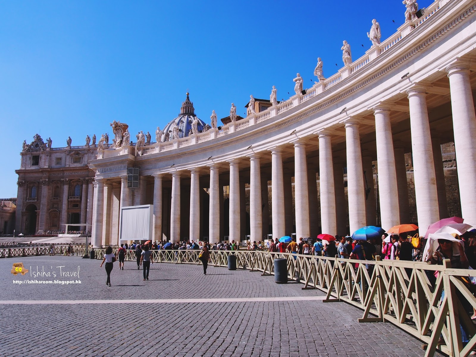 聖彼得廣場是貝尼尼花了十一年時間建造. 由284條大理石長柱構成的橢圓形長廊, 環繞廣場.