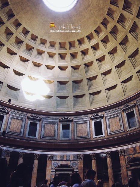 萬神殿拱頂上有個大圓窗, 可引入光線, 再射向神殿的四壁