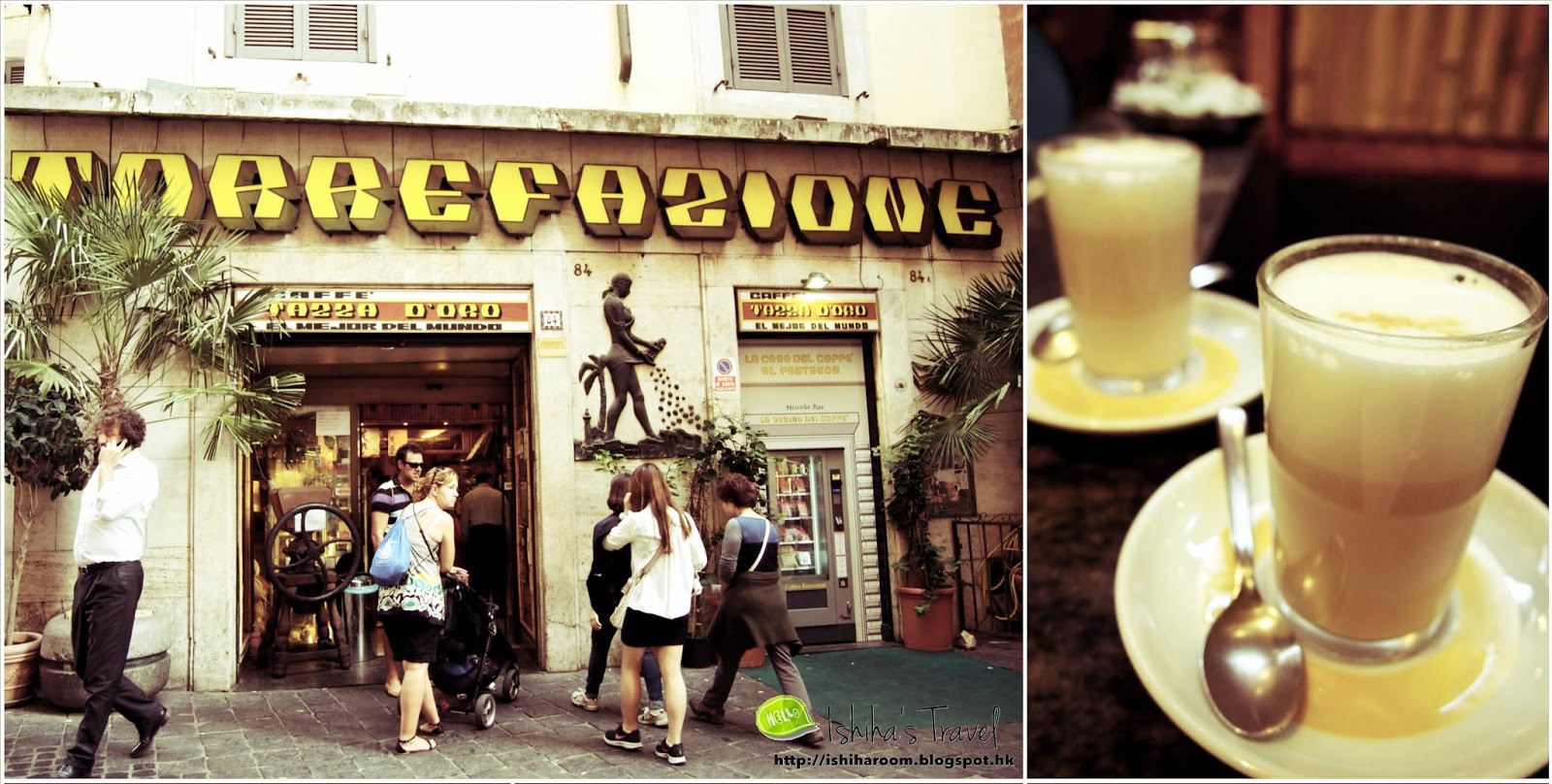 西元1946年開始營業至今, Tazza D`oro 金杯咖啡被公認全羅馬最好飲既咖啡.   除左係現場品嘗金杯咖啡之外, 亦要買返幾包咖啡豆.   咖啡豆有分金色同紅色包裝袋.  紅色先係金杯咖啡, 一包250g只賣 €12.  我自己覺得買返來用Mocha 壺煮出來既咖啡真係好香, 好好味.  最慘係我入左好少貨 !_!