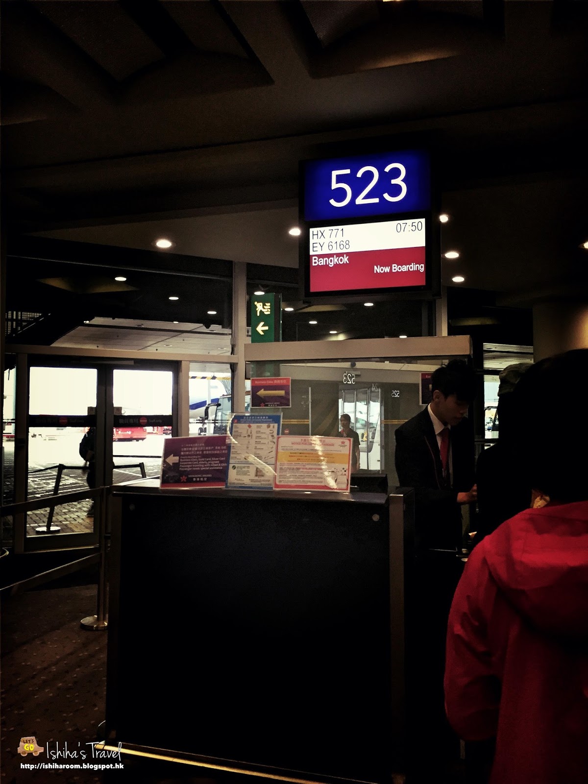 出發當天, 香港掛緊三號風球, 我只係希望佢唔好Delay就算啦!! 好彩天氣唔算差, 係閘口上巴士再行出去停機坪上機都冇問題.