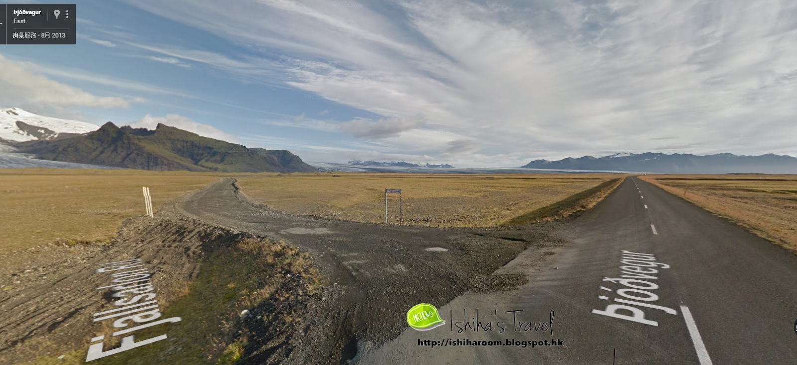 我地先到了Fjallsarlon Glacier Lagoon, 呢個冰口湖入口較難找, 指標細到睇唔到不在話下, 而且唔係1號公路上, 揸車快就好易miss左個路口.  好好彩我前面架車都係去呢度.  我Capture呢張圖給大家參考吧!! 個路牌真係細到見唔到寫咩.