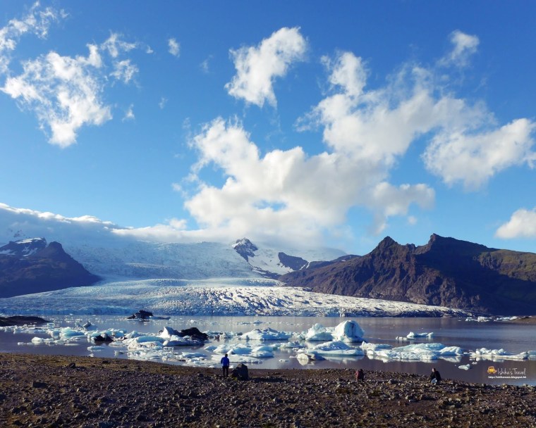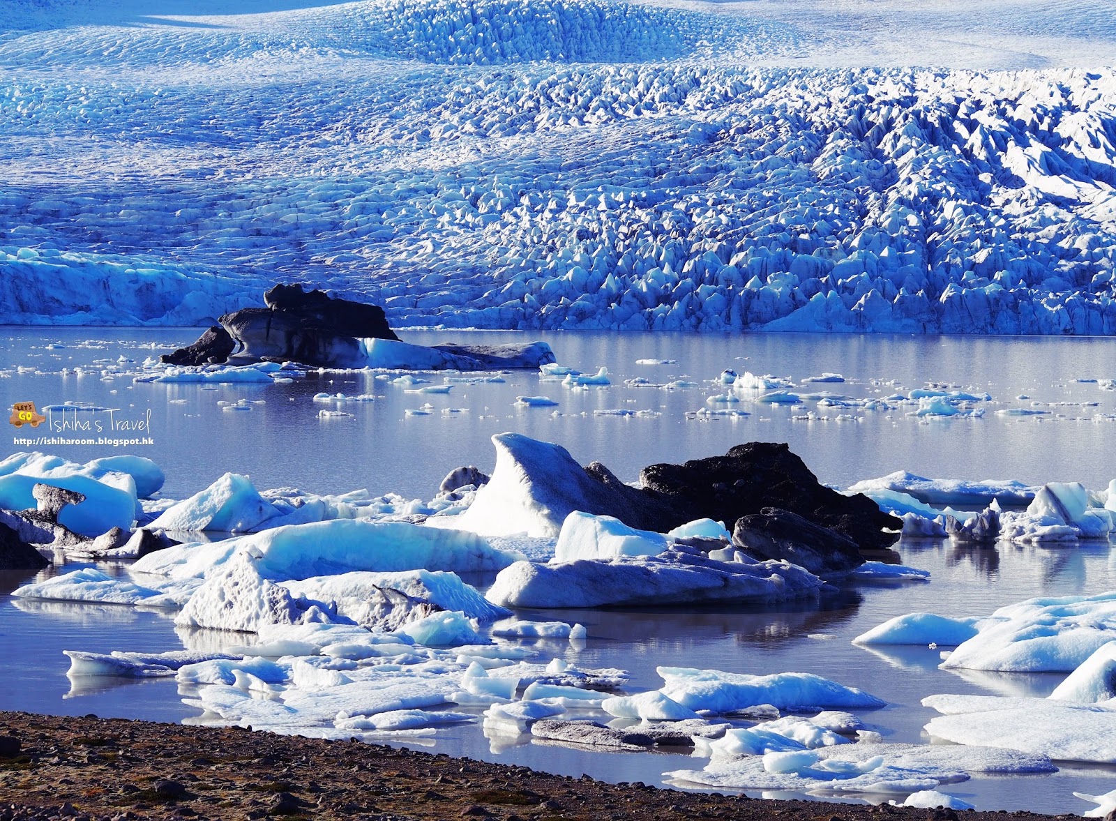 我地係度影相停留左好耐呢!!  冰河湖後面就係Vatnajökull glacier, 冰川一層層湧出來, 好有氣勢