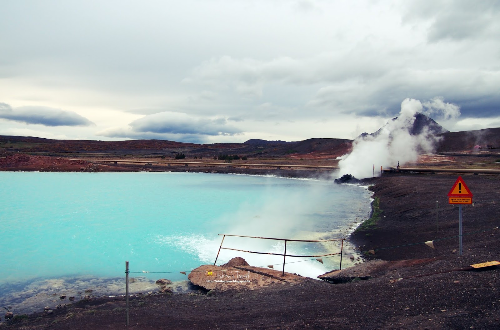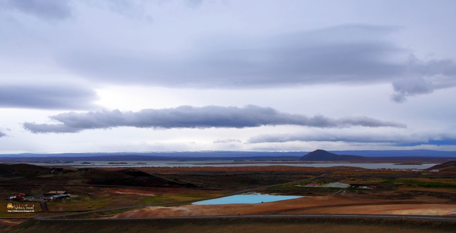 後面Bjarnarflag地熱發電廠會噴出大量既白煙, 連熱水也是經水道噴出於湖面上.