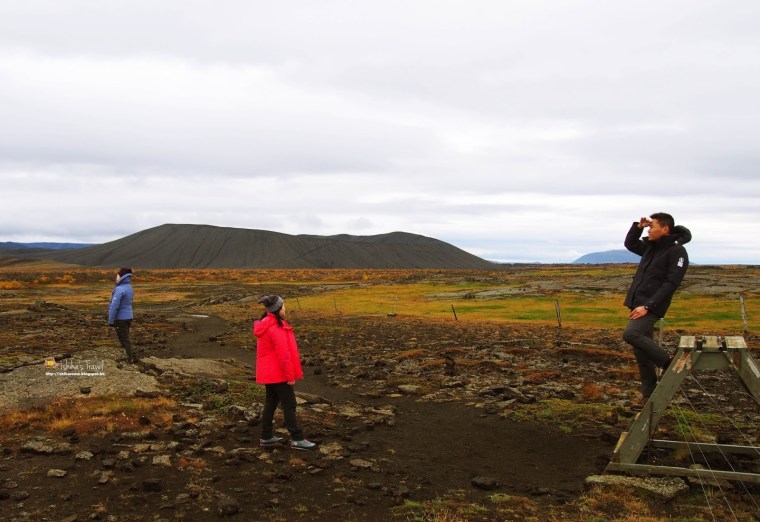 我地跳過地裂谷, 往前行, 便是斷塊山面, 大家可以係度遠眺巨型火山口. 不過呢個火山口係假既, 叫做Hverfjall.