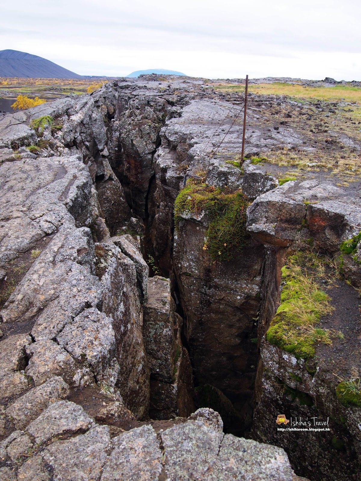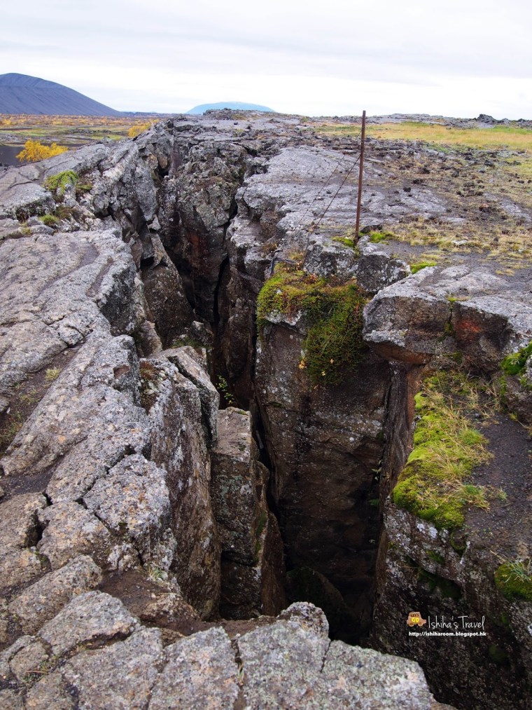 去完 Grjótagjá 洞穴溫泉, 千其唔好走住. Grjótagjá 洞穴溫泉上面有路徑可以比人行上去. 上面可以睇到北美和歐亞板塊之間的地質斷裂帶.