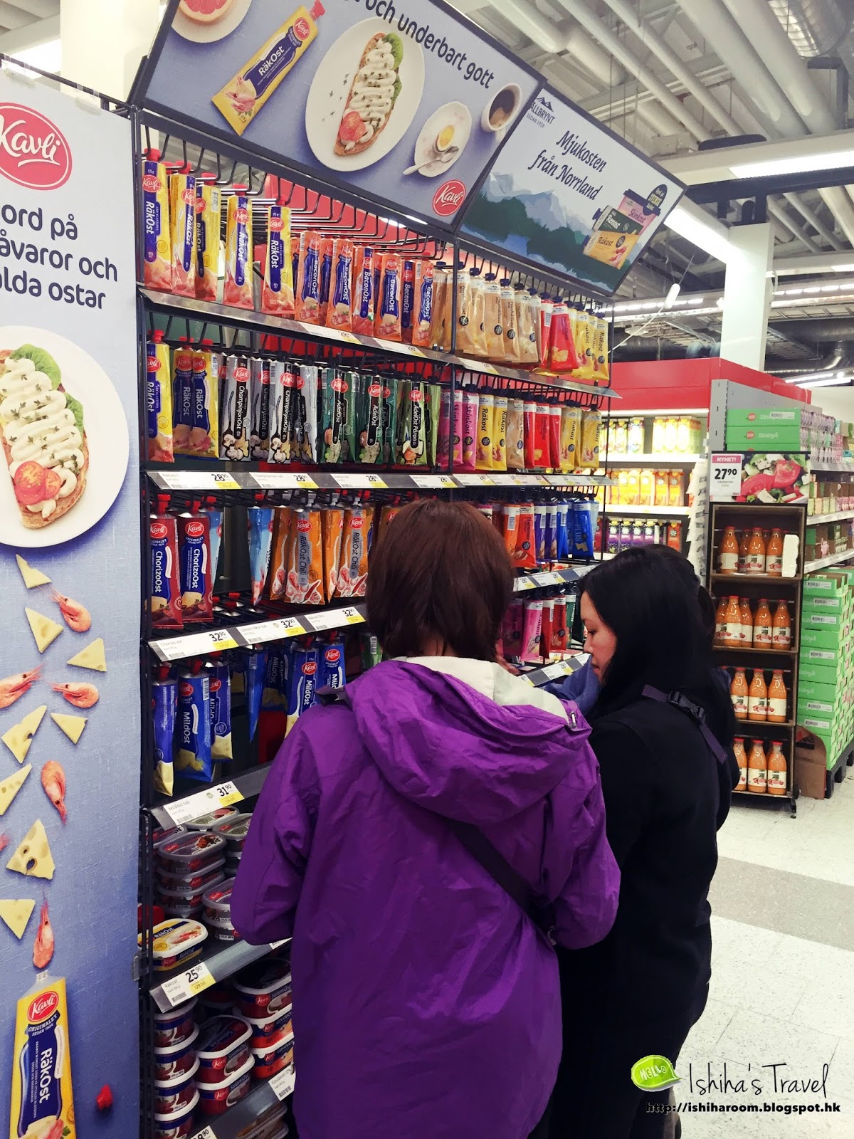 Settle後就先去樓下Supermarket買野食, 方便明天帶去冰島.  之前都有講過冰島物價貴, 大部份係進口貨.  那倒不如見到Stockholm超市有合適可帶去吃既都買少少.  入到去超市真係好大, 仲見到呢個必買item: 就係唔同口味既麵包醬啦!!  遠睇可能以為係顏色水彩呢!! 口味超多選擇.  每枝都係HK$30-40.  用來做手信都好呀!! 所以我地每人買左幾枝 .